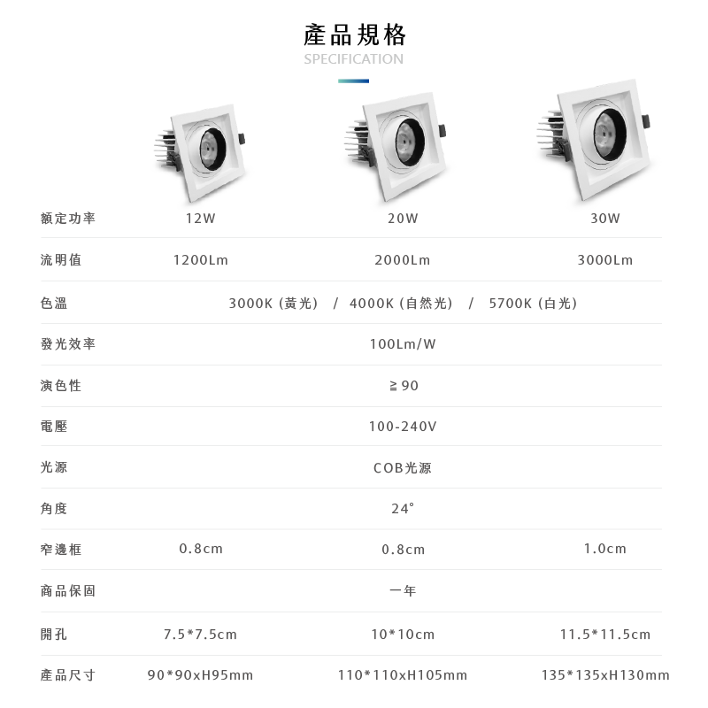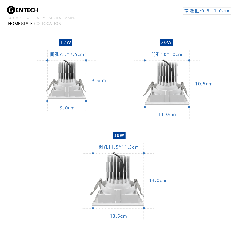 開孔: 7.5*7.5cm/10*10cm/11.5*11.5cm