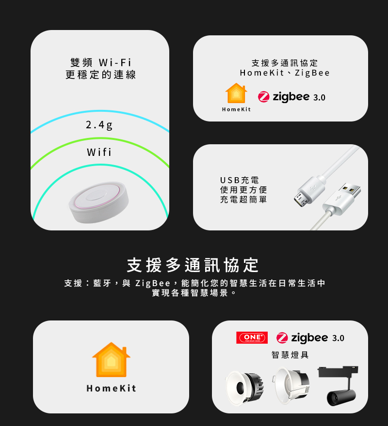 Zigbee 3.0 極低功耗、瞬時響應、最多同時支援50個裝置