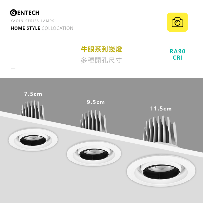開孔: φ7.5cm/φ9.5cm/φ11.5cm