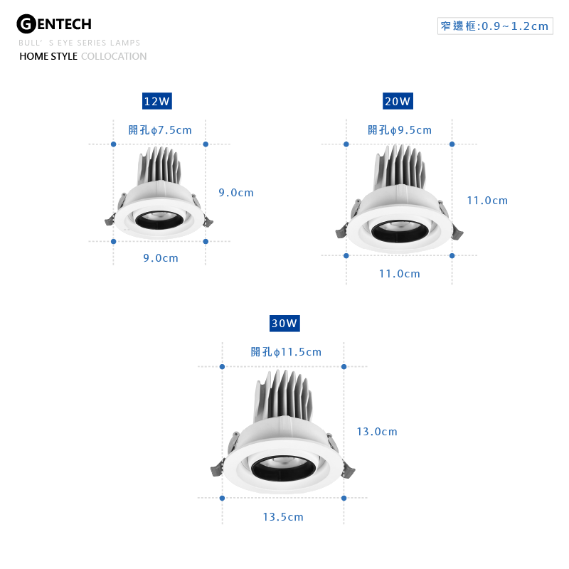 窄邊框: 0.9~1.2cm