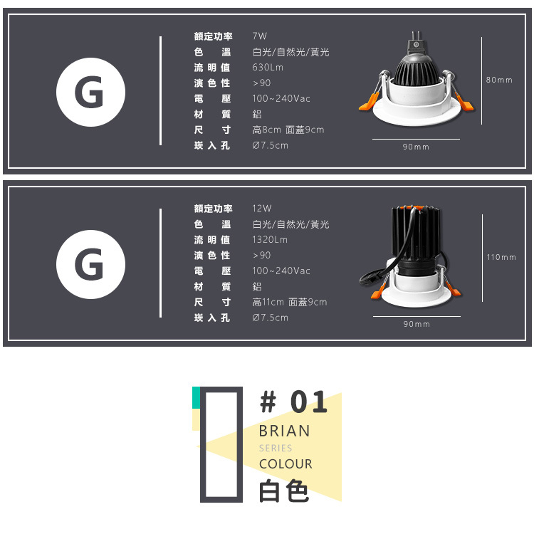 品名:701CD Brian崁燈 7W~12W 7.5cm