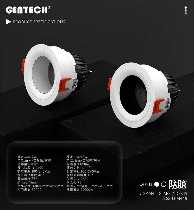 防眩崁燈 7W/12W 7.5cm AD-R86