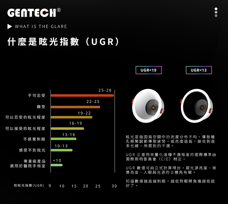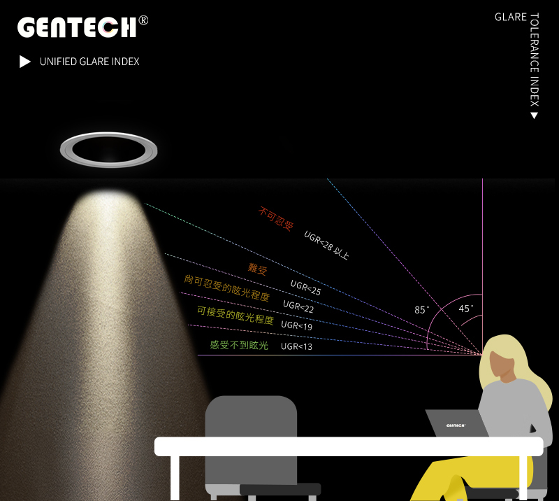 嚴格控制UGR值低於19,有效消除視覺疲勞與眩光干擾