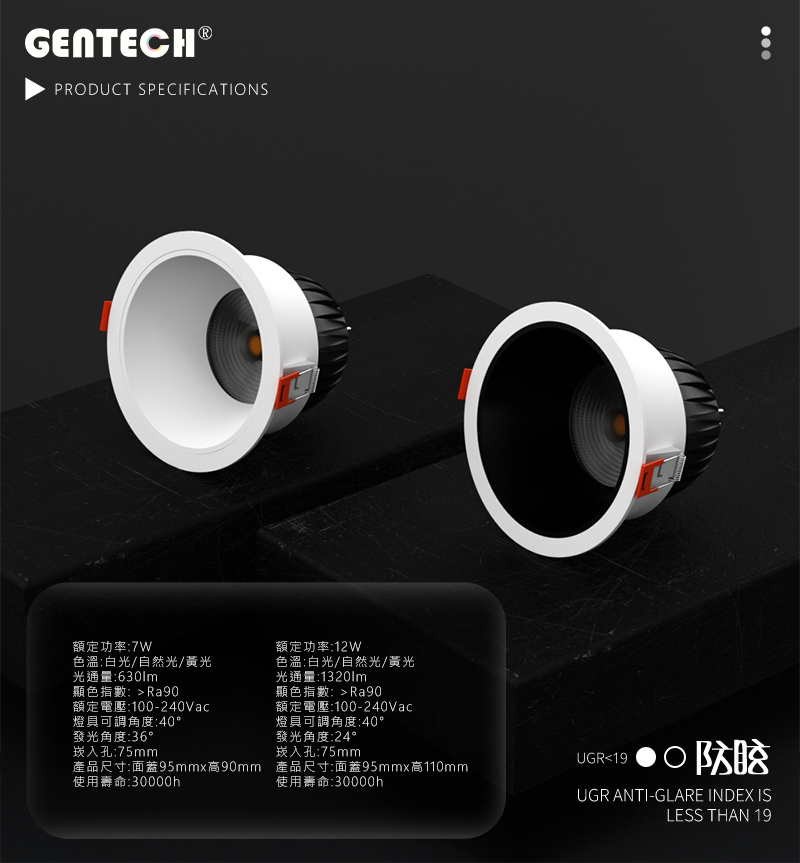 防眩崁燈 7W/12W 7.5cm AD-R95