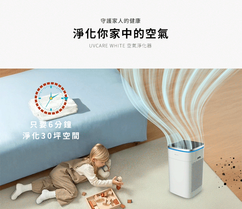- 只要6分鐘,就能淨化30坪空間,讓您快速享受潔淨空氣