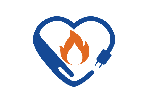 電源、愛心雙手、生生不息的火苗,所組成的標誌