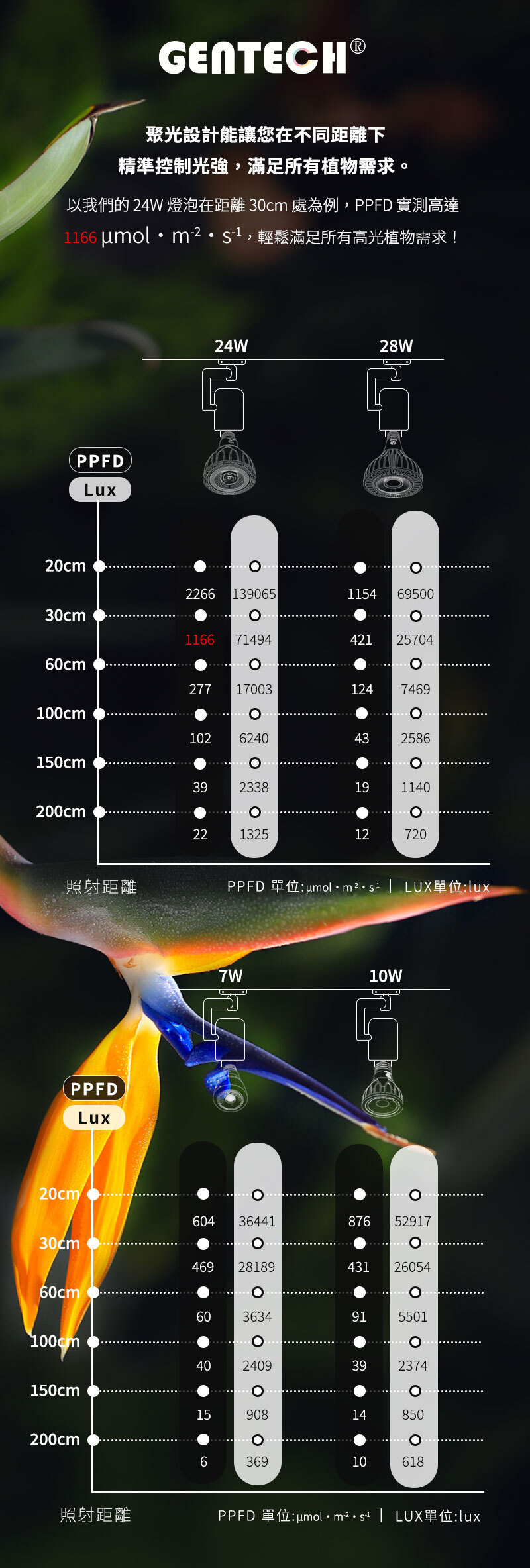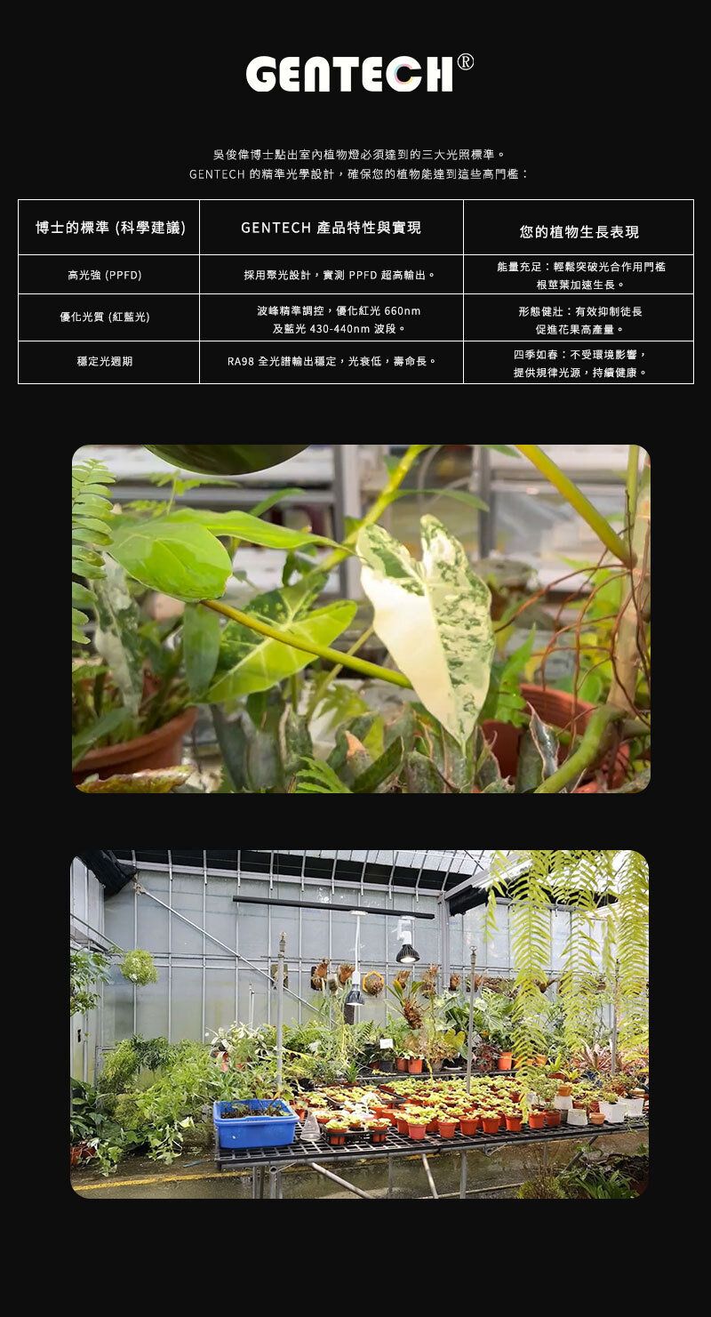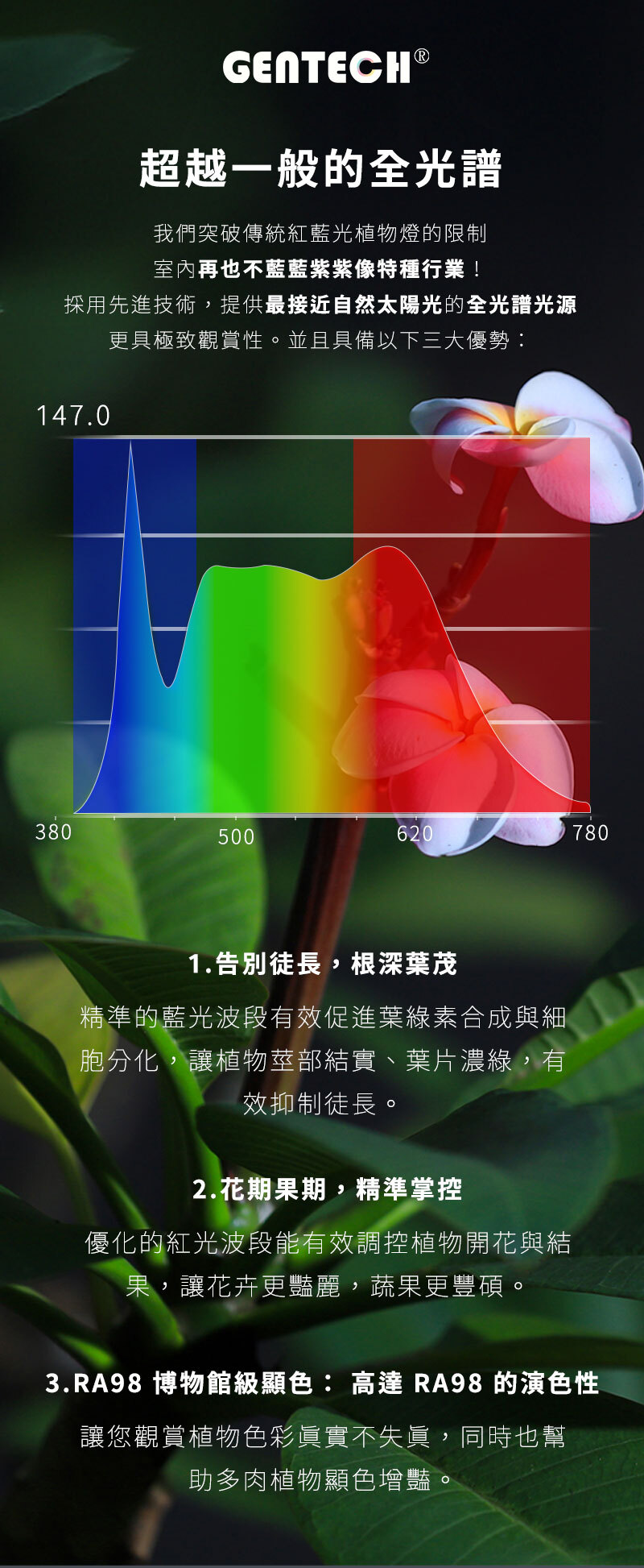 • 足量紅光 × 藍光,滿足植物從葉片、莖部到花果的關鍵波長需求