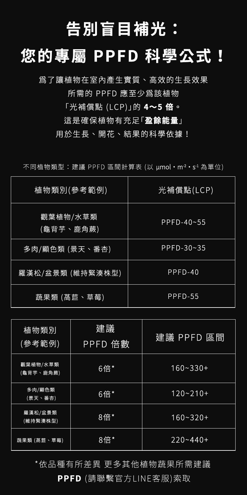 • 滿足光補償點,提升光合作用效率,植株更健康