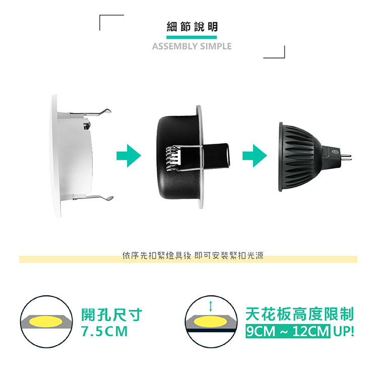 ⚠️選12W模組光源請確認天花板高度至少12cm⚠️