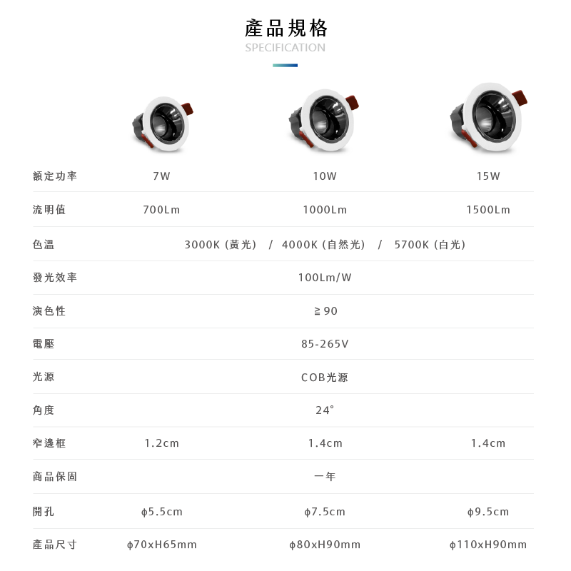 發光角度: 15° / 24° / 38°