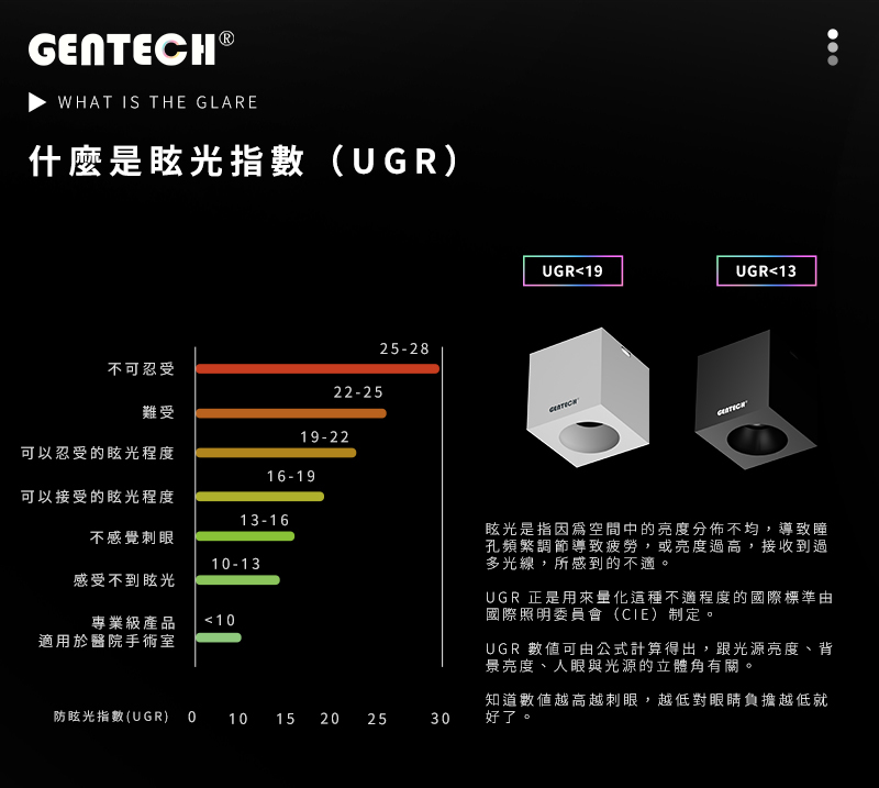 嚴格控制UGR值低於19,有效消除視覺疲勞與眩光干擾