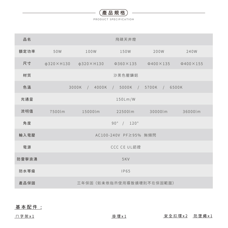 電壓:AC100-240V PF≥95% 無頻閃